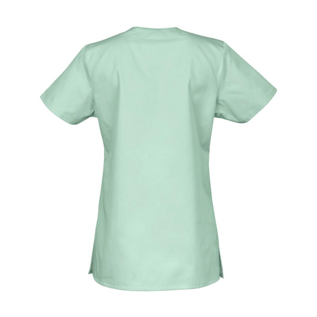 Pracovní halena dámská Laura Basic v mentolové barvě, s pohodlným projmutým střihem, jednoduchým oblékáním přes hlavu a praktickými kapsami. Materiál: 100% bavlna kepr 160g/m2. Praní: na 60°C.