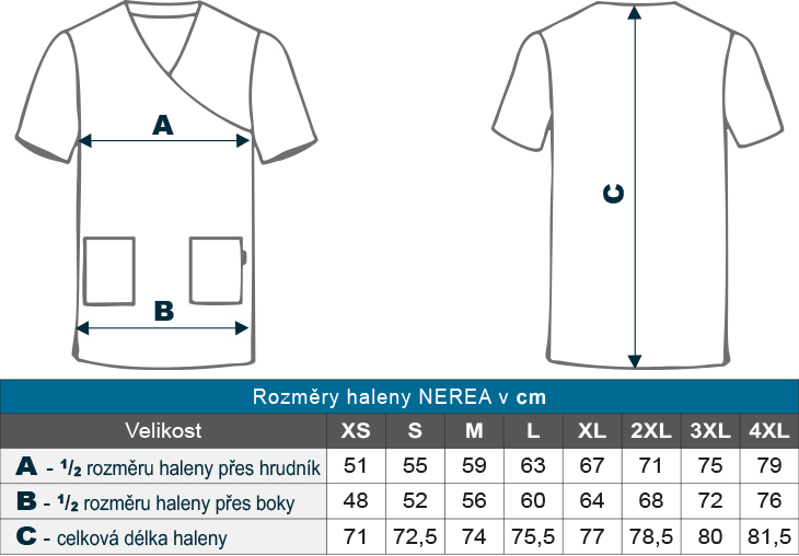 Pracovní haleny Uni Nerea zelená mají pohodlný střih, který je navržen tak, aby vynikly nejen ve zdravotnickém prostředí. Haleny mají krátké rukávy, výstřih do V a 2 praktické kapsy, což podtrhuje funkčnost a styl. Polo-přiléhavý střih s bočními rozparky zaručuje pohodlí během dlouhých pracovních dní. Ideální jako pracovní oděv pro zdravotnický personál, včetně sester, lékařů, a vhodná pro různé pracovní prostředí jako nemocnice, kliniky, lékárny, gastro provozy nebo veterinární ordinace.
