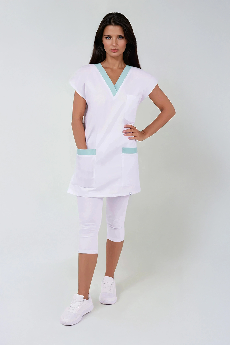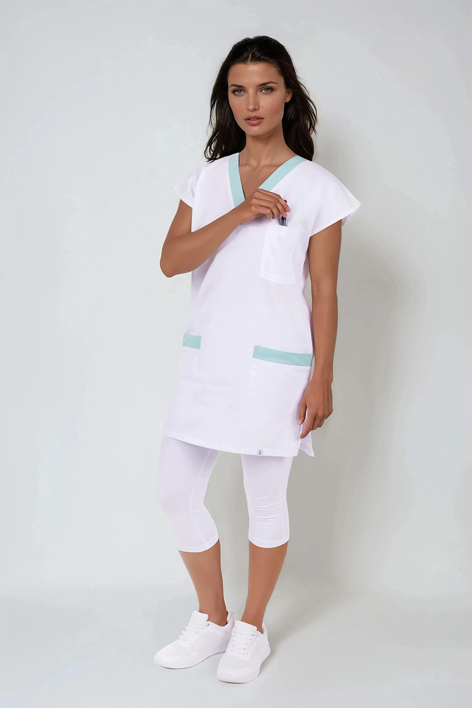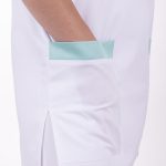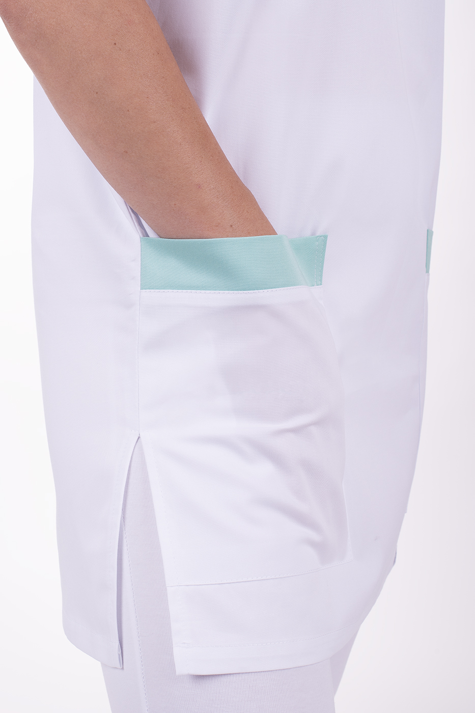 Barevné provedení v kombinaci klasické bílé a jemné mentolové působí svěže, čistě a profesionálně. Je to barevná kombinace, která je příjemná nejen pro nositele, ale i pro zákazníky, pacienty nebo kolegy. Stylový, ale přitom decentní vzhled činí tuto pracovní halenu vhodnou pro široké spektrum pracovních prostředí.