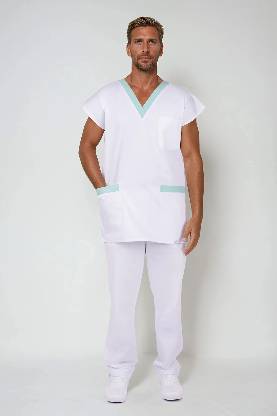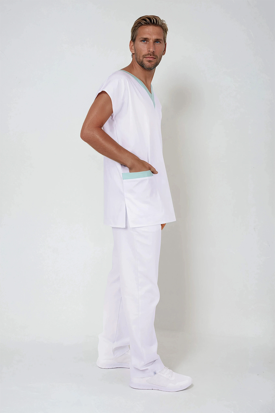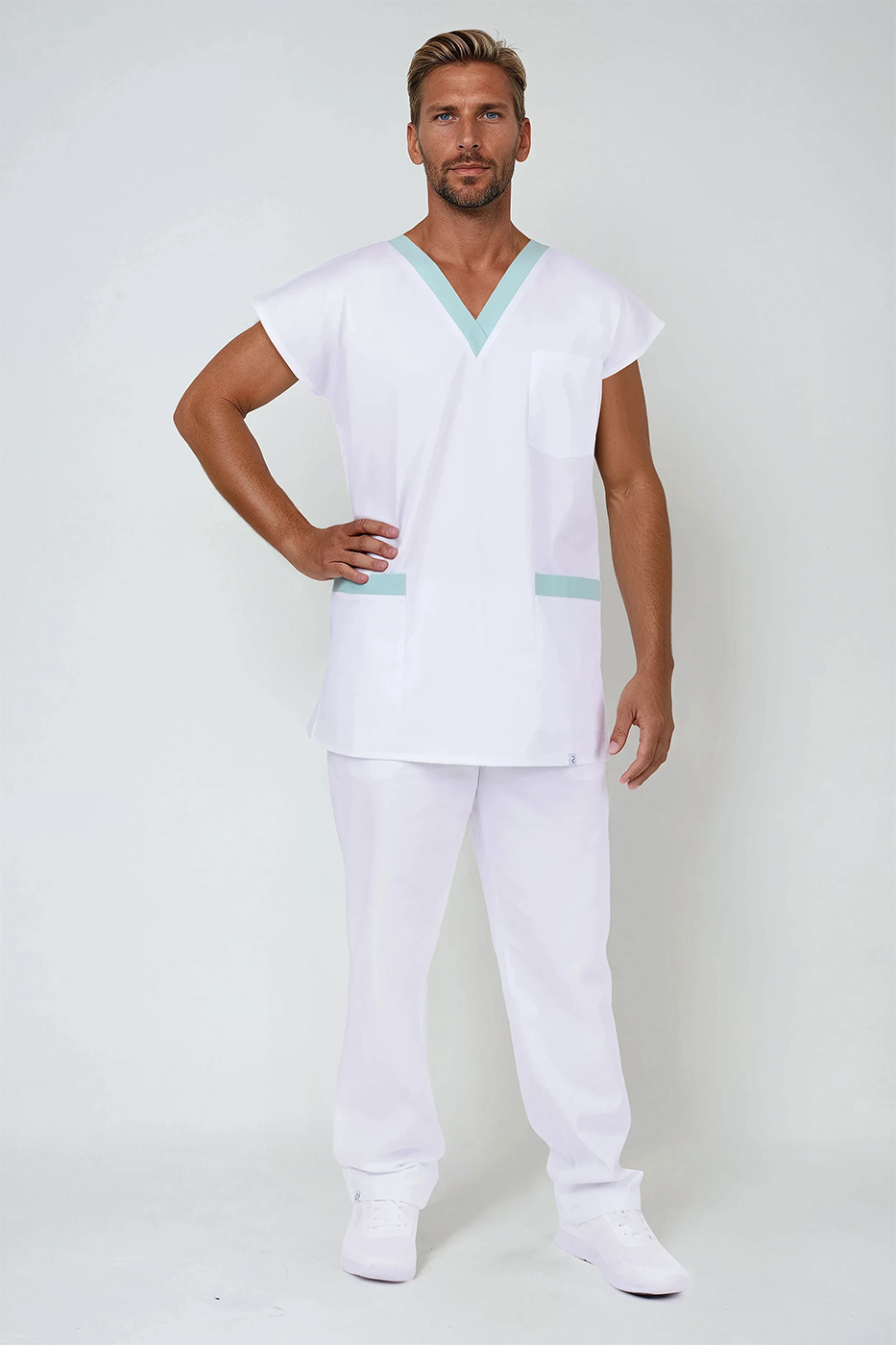 Model Prima Basic ve svěží kombinaci bílé a mentolové barvy je navržen tak, aby vyhovoval širokému spektru pracovníků bez ohledu na pohlaví, věk nebo typ postavy. Volný, unisex střih poskytuje maximální pohodlí a umožňuje pohyb bez omezení i při náročném pracovním dni. Díky kvalitnímu materiálu a praktickému designu je tato halena skvělou volbou pro každého, kdo chce vypadat profesionálně a cítit se komfortně zároveň.