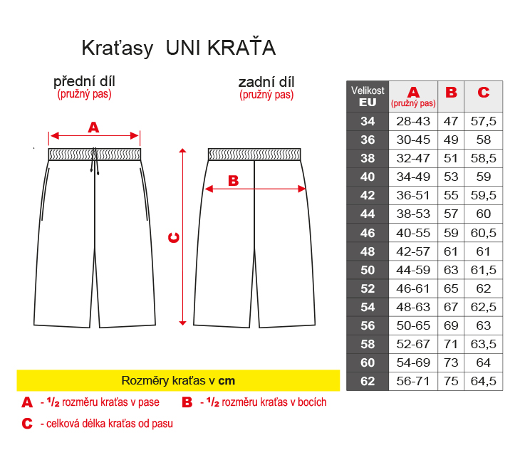 Pracovní kraťasy Uni Kraťa v délce nad kolena mají v pase 2 vyměnitelné gumy a 1 šňůrku, 2 švové kapsy. Materiál: 100% bavlna, sanfor., merc. 200g/m2. Praní: na 95°C.