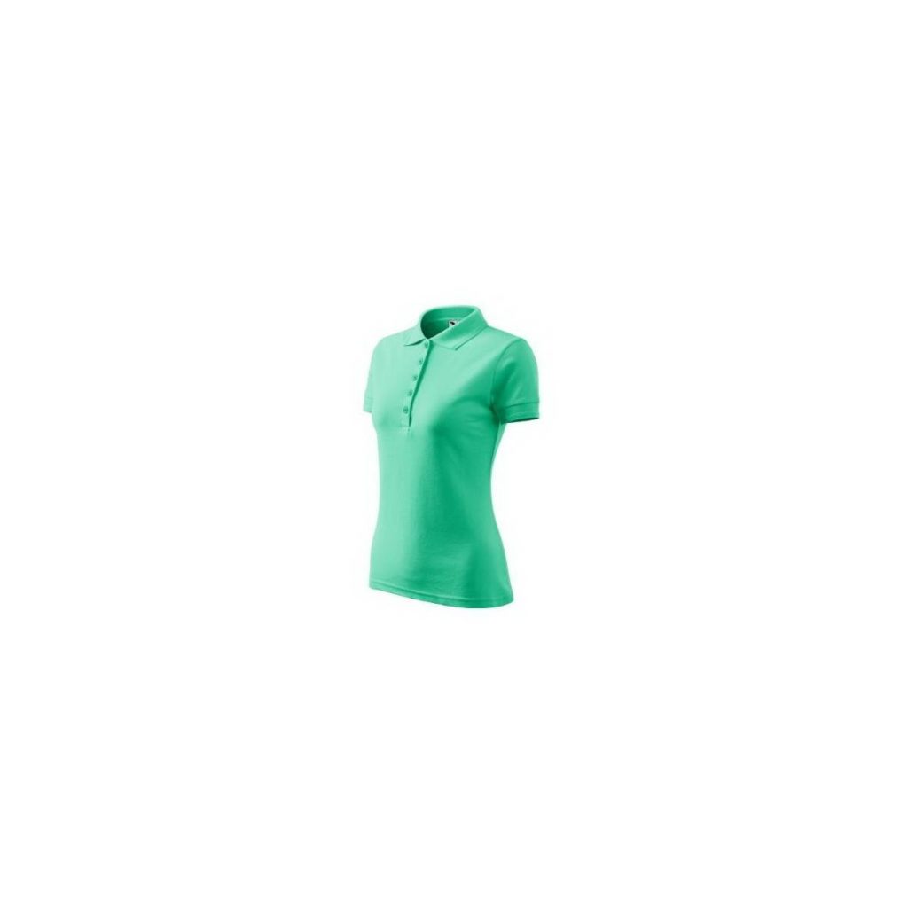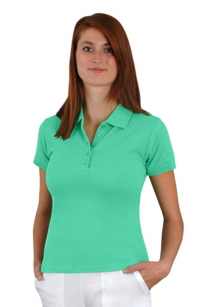 Pracovní polokošile dámská Fitnes mátová ze směsového pique úpletu, elegantní a dobře padnoucí střih, prodloužená úzká léga s 5 knoflíčky, límeček a náplety na rukávech mají dvojitou vlnku po obvodu, délka do boků, saténová etiketa se symboly údržby. Materiál: 65% bavlna, 35% PES, 200g/m2. Praní: na 40°C.