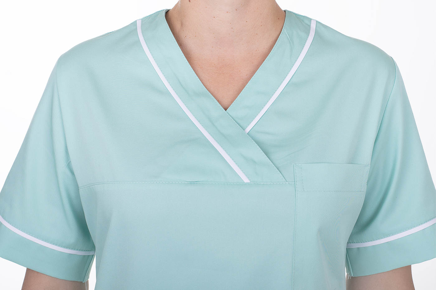 Pracovní šaty pro zdravotní sestry Julia-B v mentolové a bílé barvě přinášejí svěží vzhled, který osvěží váš pracovní den. Jejich jednoduchý, ale elegantní střih skvěle padne na každou postavu, ať už jste v pohybu nebo v klidu. Díky svému designu se snadno kombinují s různými doplňky, takže si můžete vytvořit svůj vlastní jedinečný styl.