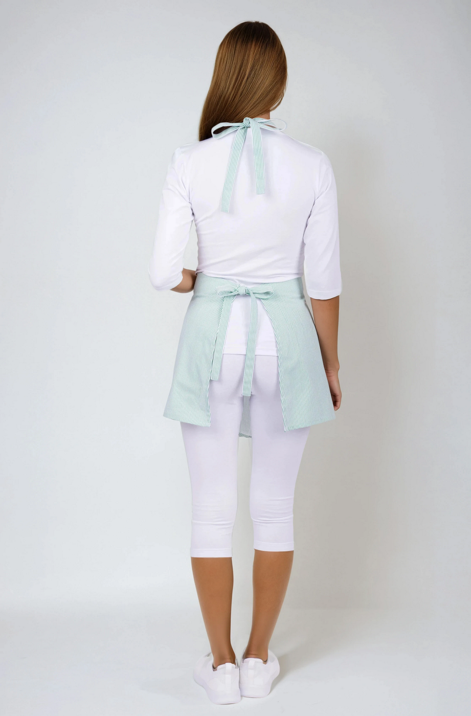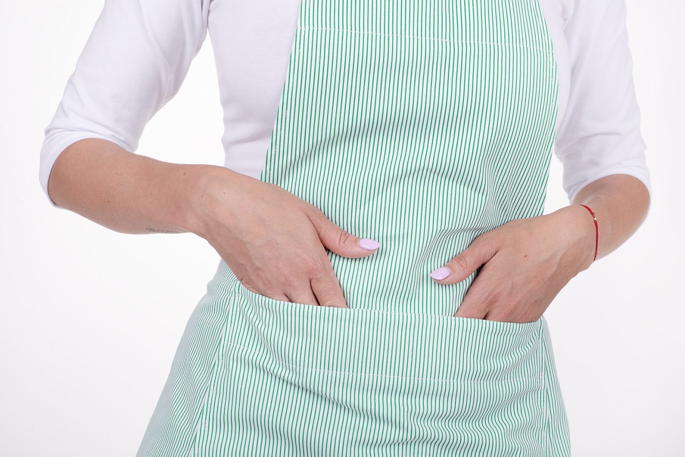 Pracovní zástěra Ricci se zeleným proužkem působí svěže a profesionálně. Jemný proužek dodává celému oděvu elegantní vzhled, který ocení jak zdravotnický personál, tak pracovníci v gastronomii či laboratořích.