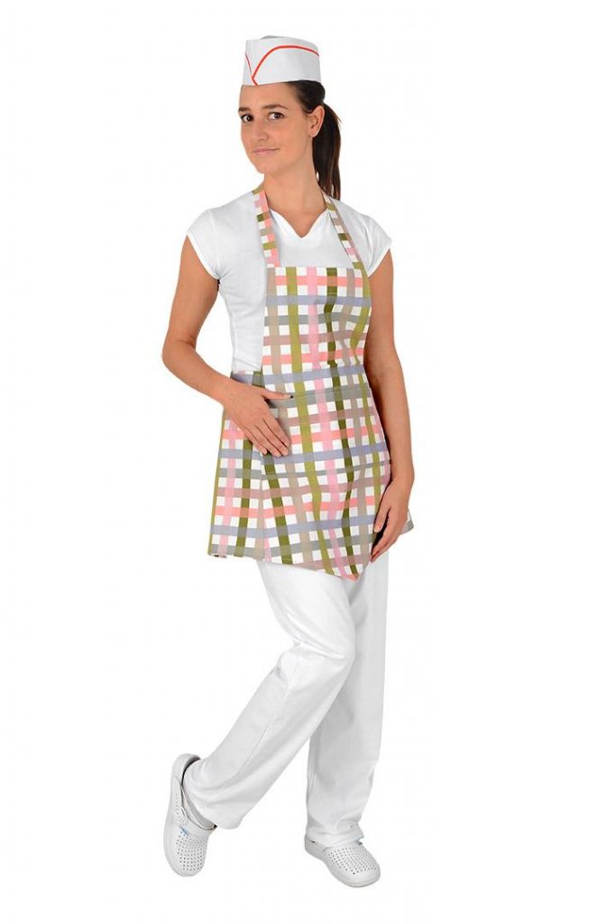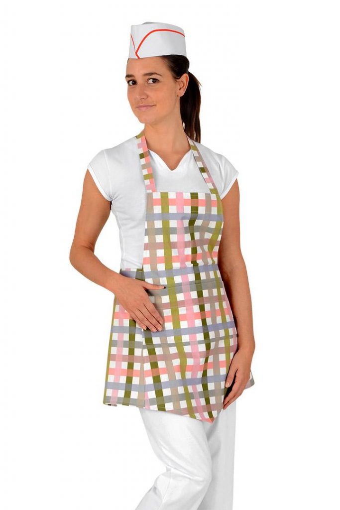 Pracovní zástěra s laclem dámská Ricci má v přední části praktickou kapsu, zavazování v pase a za krkem. Rozměry zástěry délka 65cm a šířka 68cm.