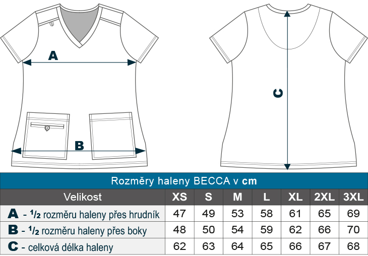 Moderní Halena Becca v fuxiové barvě, s klasickým výstřihem do V, lehká tkanina odvádějící vlhkost, 4 kapsy včetně skryté kapsy na mobil s potiskem podšívky, pružná smyčka pro uchycení jmenovky, kontrastní potisk na spodní straně lemu krku, lehký strečový materiál, který není nutné žehlit, vícestehové prošívání ve švech pro delší životnost oděvu. Materiál: 95% polyester + 5% spandex. Praní: na 30°C.