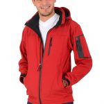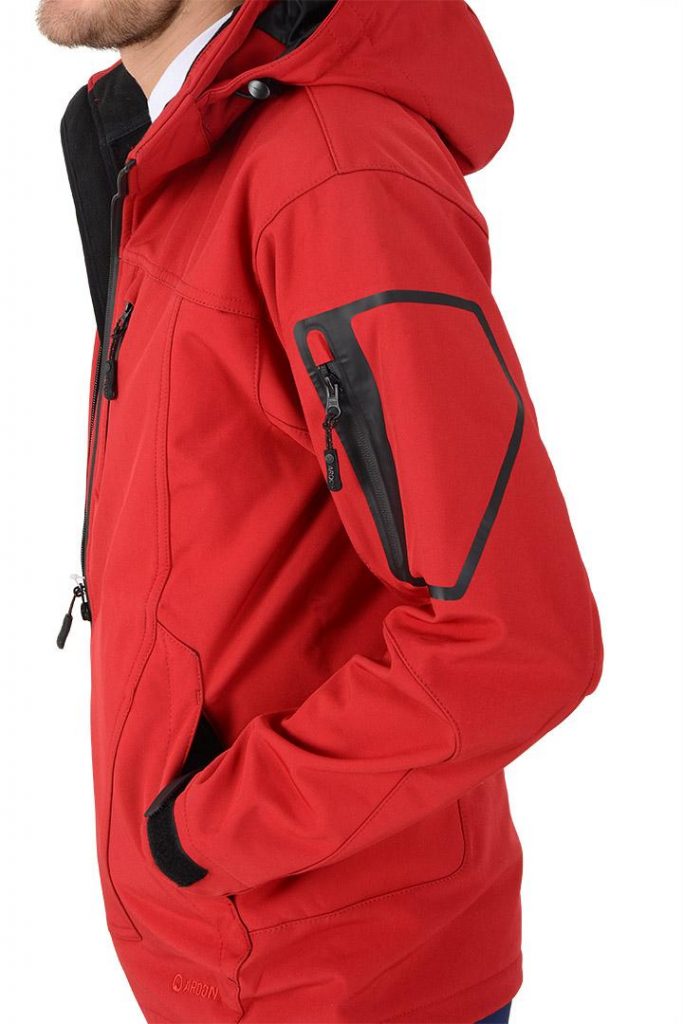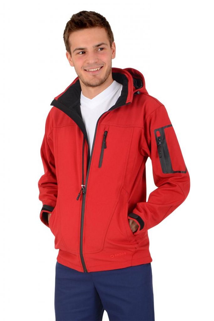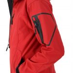 Softshellová bunda pánská červená s odepínatelnou kapucí, skvěle padnoucím a pohodlným střihem, snadné nastavení šířky pomocí stoperů na spodním lemu a na kapuci, regulovatelné manžety rukávů a voděodolné zipy. Materiál: voděodolný 93 % polyester/7 % spandex s TPU membránou, voděodolnost 10 000 mm, MVP 800 g/m2/24 h. Hřejivá podšívka z mikro polarfleece 100 % polyester.