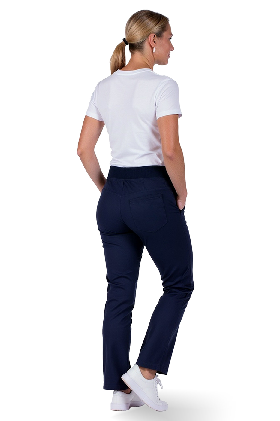 Strečové kalhoty dámské Mili EL s pružným pasem v navy barvě jsou velmi pohodlné a praktické na nošení v práci i při volnočasových aktivitách. Kalhoty mají 3 praktické kapsy, v pružném pase šňůrku na stažení. Materiál kalhot je pružný. Materiál: 97% bavlna, 3% elastan 200g/m2. Materiál pružného pasu: 100% bavlna žebro. Praní: na 60°C.