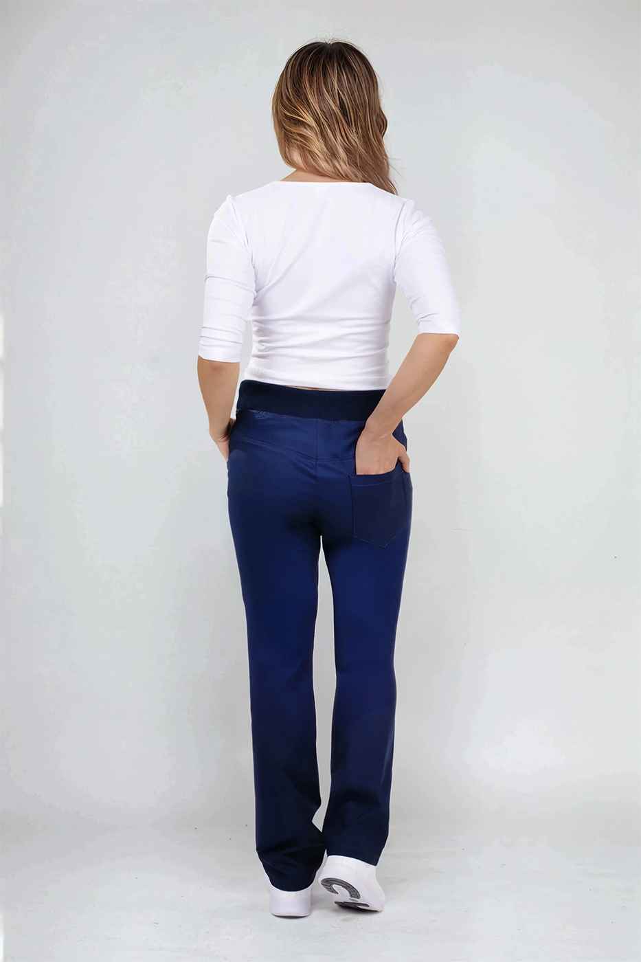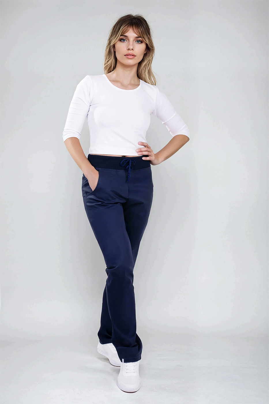 Strečové kalhoty dámské Mili EL s pružným pasem v navy barvě jsou velmi pohodlné a praktické na nošení v práci i při volnočasových aktivitách. Kalhoty mají 3 praktické kapsy, v pružném pase šňůrku na stažení. Materiál kalhot je pružný.