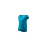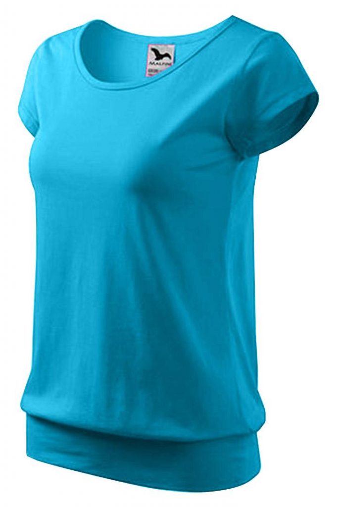 Tričko dámské tyrkysové TR-08 s širokým lemem v pase, s krátkými rukávy a volným střihem je opatřeno silikonovou úpravou, dík které je vhodné pro digitální potisk, výšivku, přímý sítotisk a transférový potisk. Materiál: 100% bavlna 150g/m2. Praní: 40°C.