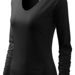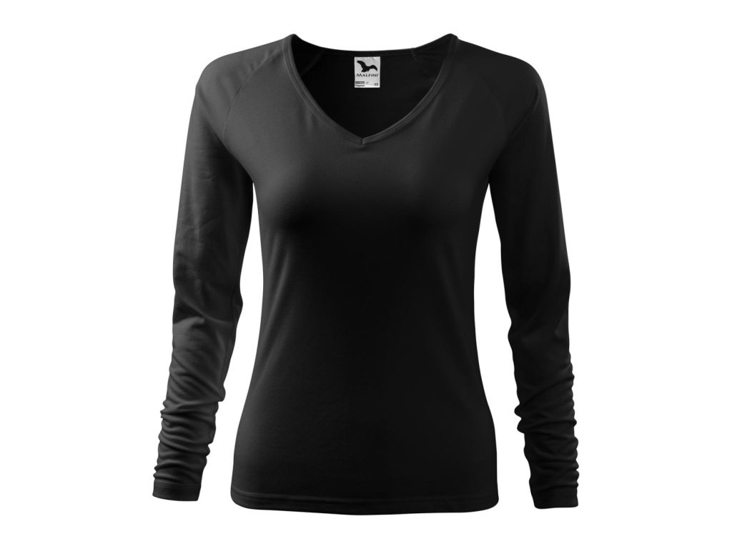 Dámské triko černé s výstřihem do V a dlouhými raglánovými rukávy, přiléhavý střih s bočními švy, kvalitní strečový materiál udržující stálost tvaru, průkrčník je lemován vrchovým materiálem. Materiál: 95% bavlna 5% elastan 180g/m2. Praní: na 30°C.