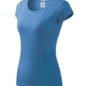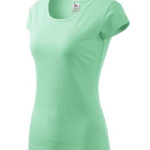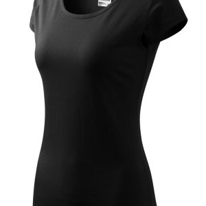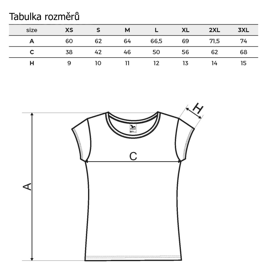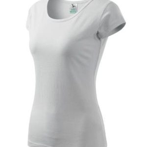 Moderní dámské tričko bílé barvy s velmi krátkým rukávem, kulatým průkrčníkem s olemováním, ramena zpevněná všitým proužkem, projmutým střihem k bokům zvýrazňujícím dámskou siluetu, exkluzivním vzhledem dík finální silikonové úpravě. Materiál: 100% bavlna, 150g/m2. Praní: na 40°C.