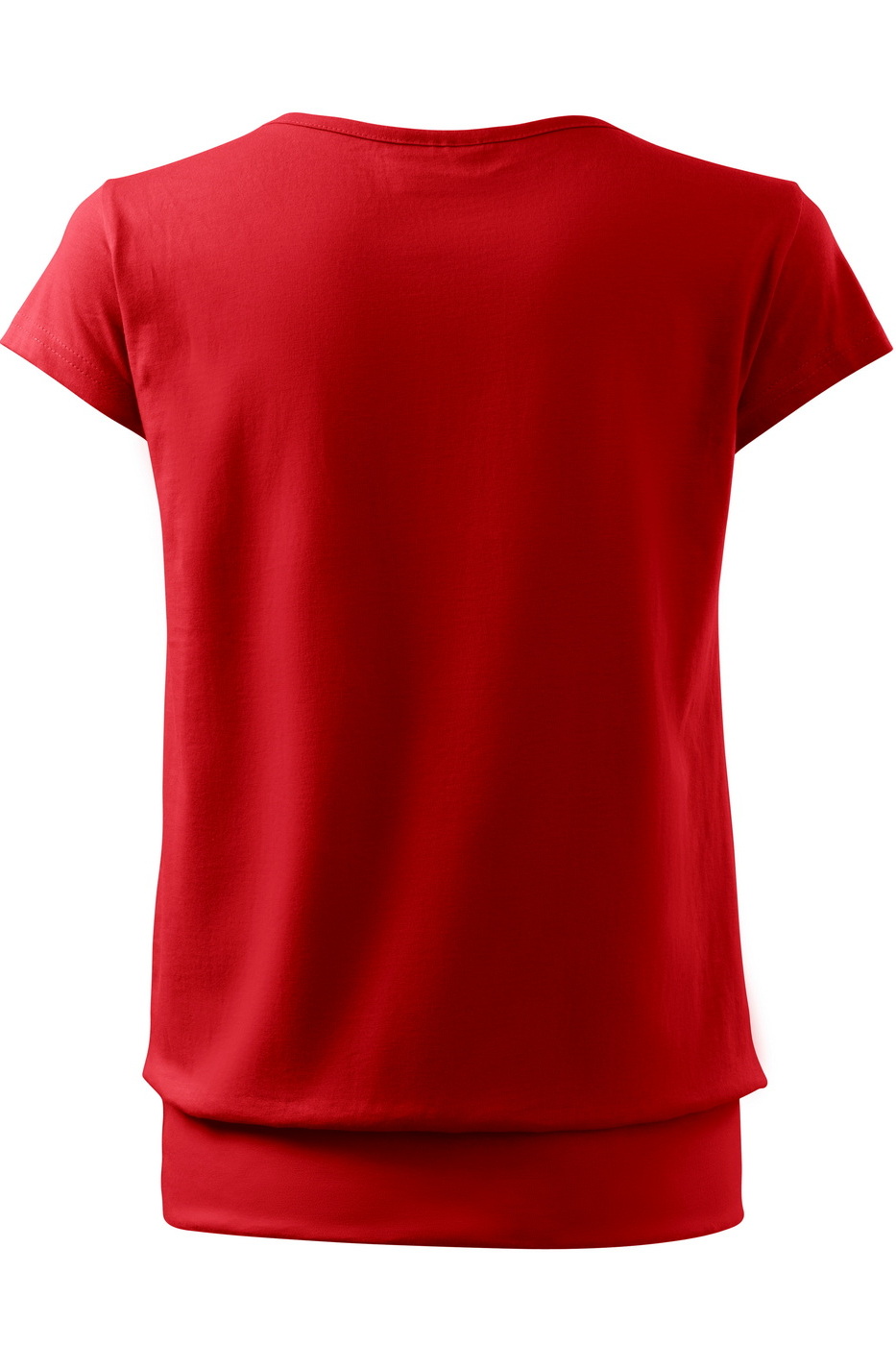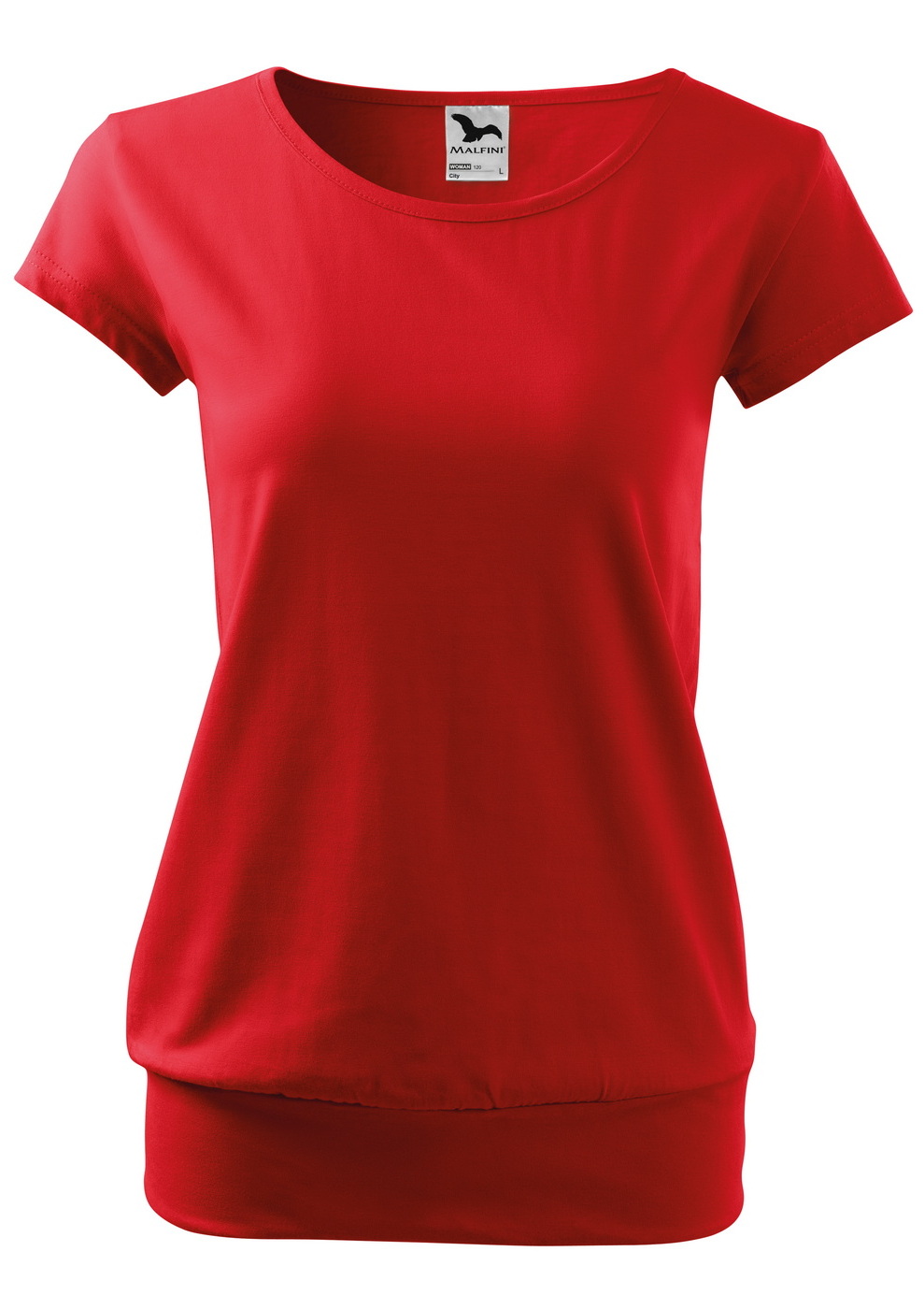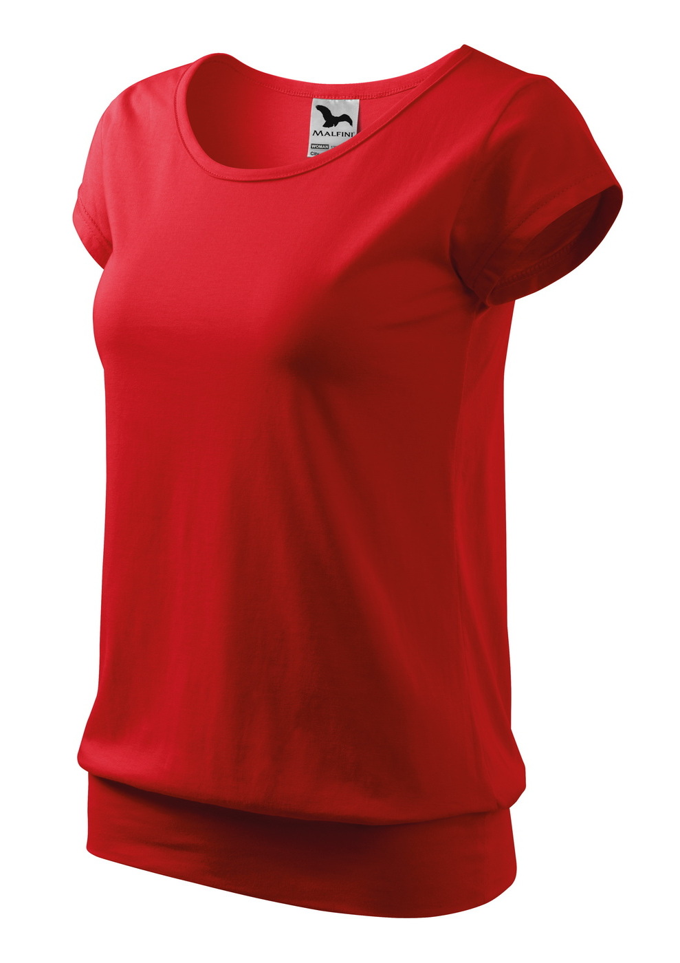 Tričko dámské červené TR-08 s širokým lemem v pase, s krátkými rukávy a volným střihem je opatřeno silikonovou úpravou, dík které je vhodné pro digitální potisk, výšivku, přímý sítotisk a transférový potisk. Materiál: 100% bavlna 150g/m2. Praní: 40°C.
