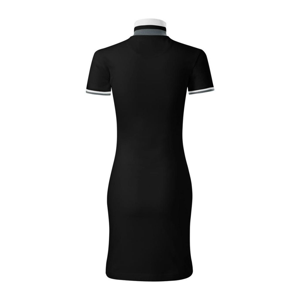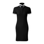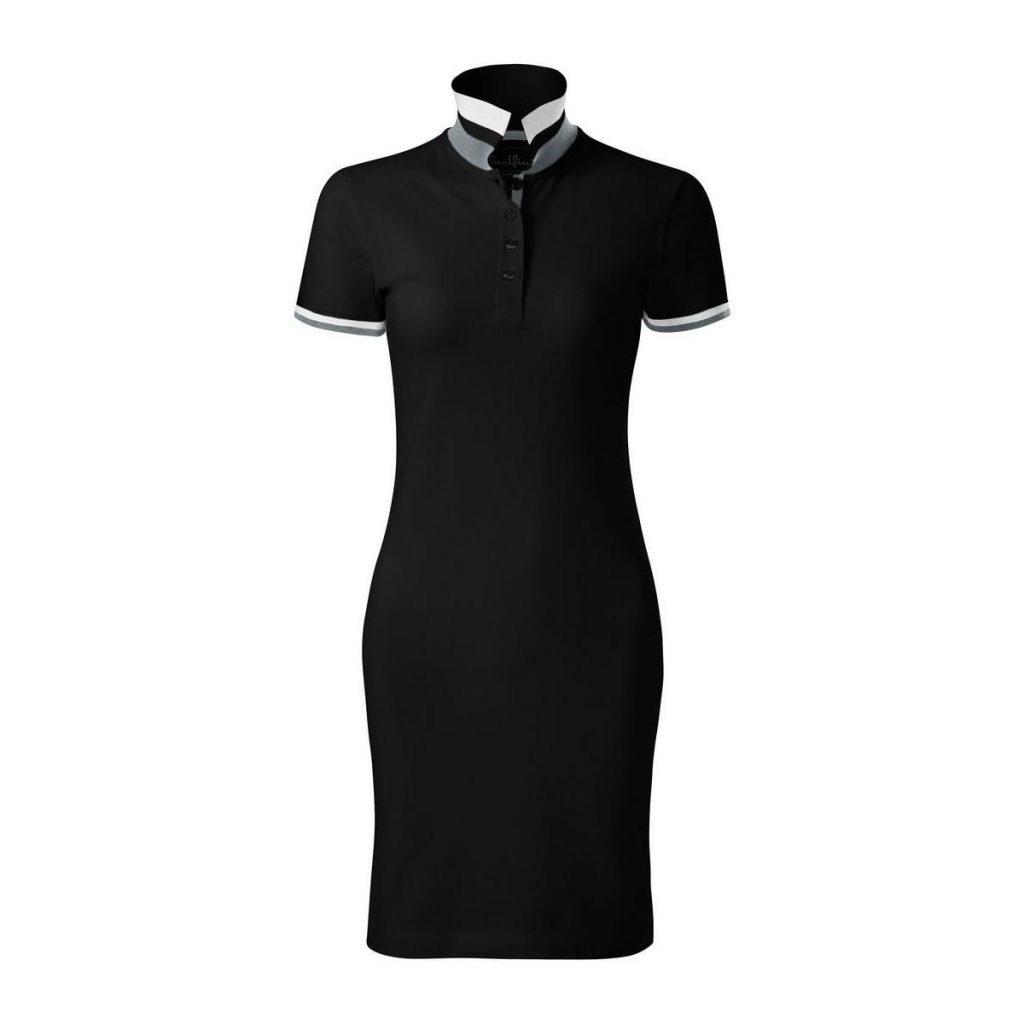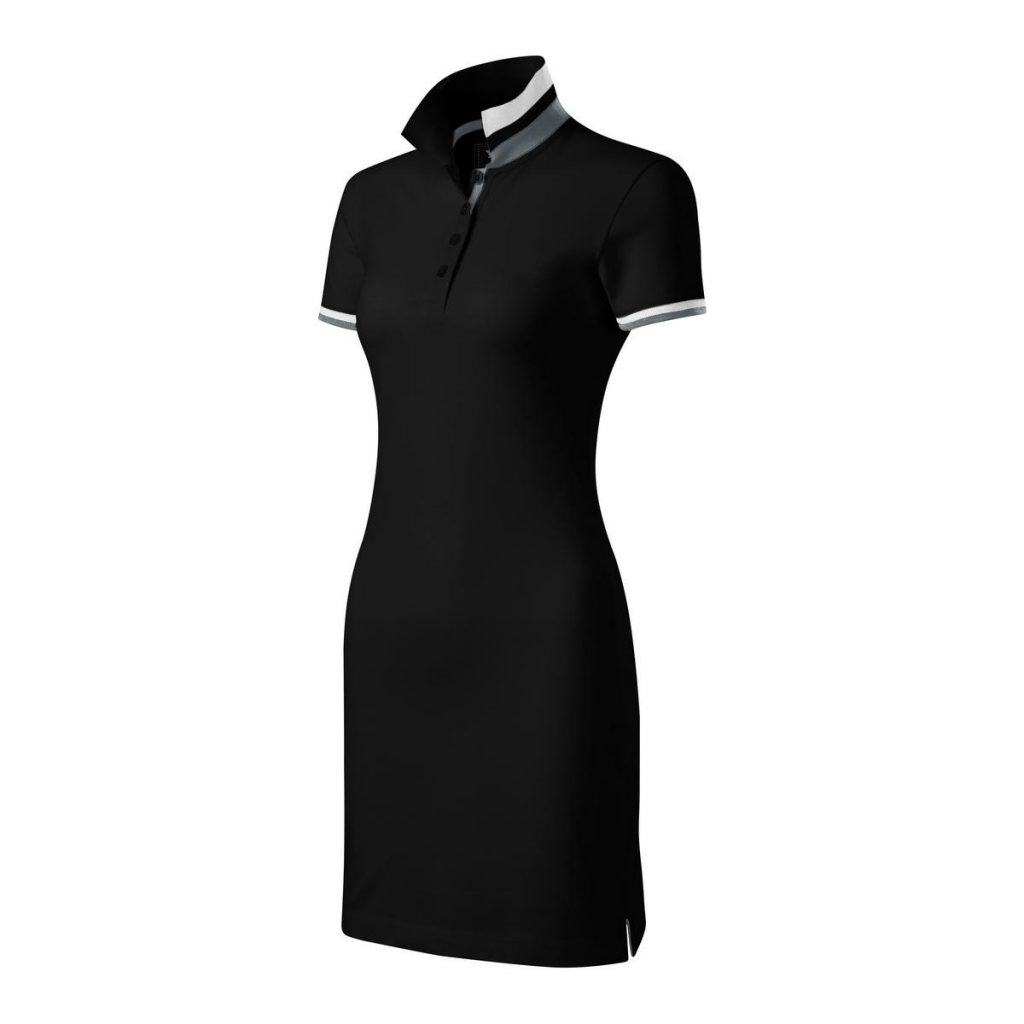 Úpletové šaty dámské Polo 271 černé mají lehce vypasovaný střih s bočními švy, límeček a lemy rukávů z žebrového úpletu 1:1, spodní část límečku a lemy rukávů s kontrastními pruhy, úzká léga s 4 knoflíčky v barvě materiálu, rozparky v bočních švech a spodní léga s kontrastní páskou, vnitřní průkrčník začištěn kontrastní páskou, ramenní švy zpevněné páskou, tkaná etiketa. Materiál: 100% bavlna 215g/m2 pique. Praní: na 40°C. Balení: 1 kus v sáčku.