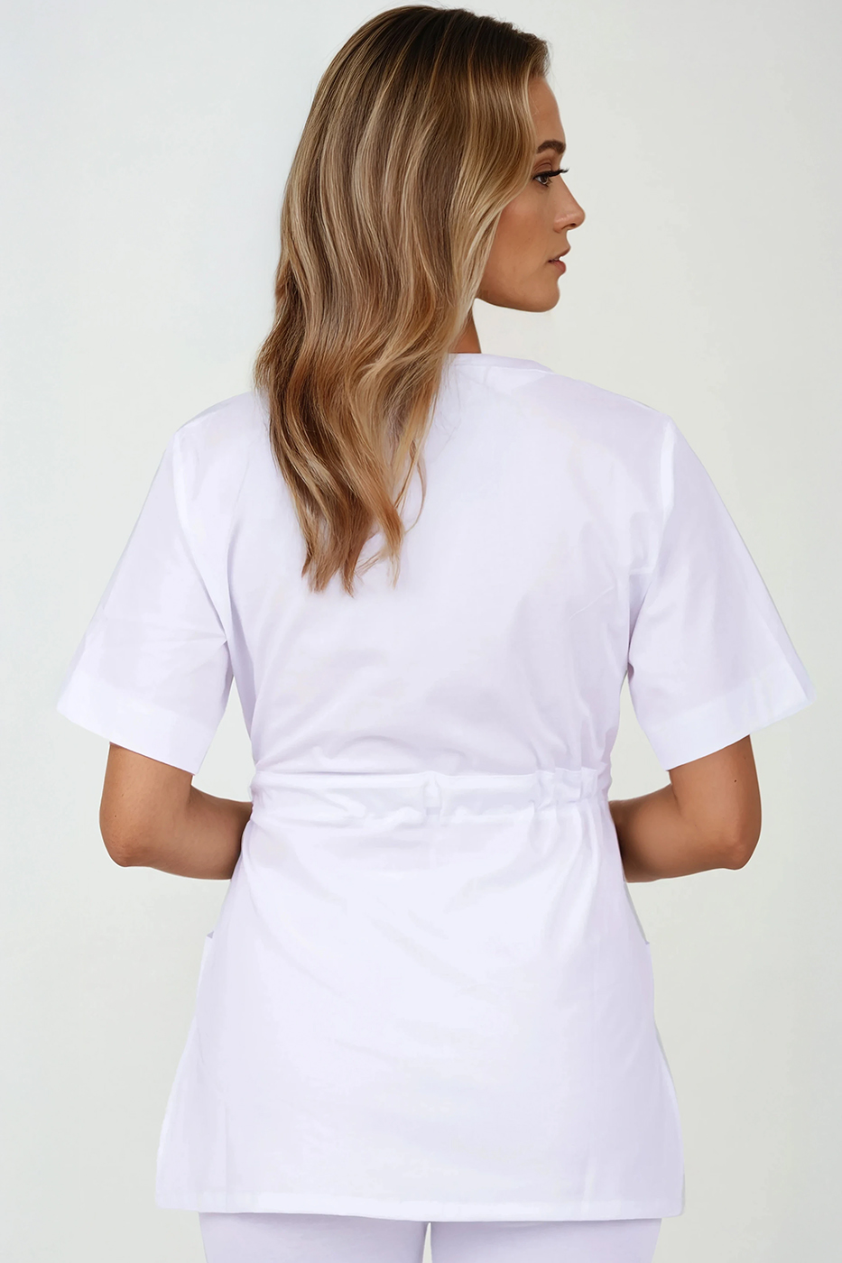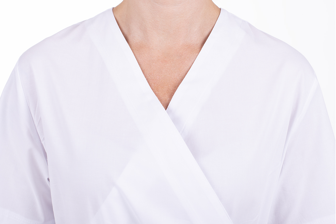 Zdravotní halena Sofie Flex není jen funkční – je i stylová. Její střih byl navržen s ohledem na ženskou postavu, takže halena nejen skvěle padne, ale také lichotí siluetě. Krátké rukávy umožňují volnost pohybu, zatímco výstřih do „V“ přidává na eleganci a zároveň nepřekáží při práci.