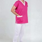 - Zdravotnické kalhoty – dostupné v široké paletě barev a střihů (do gumy, s kapsami, rovné), které lze snadno sladit s barvou haleny.