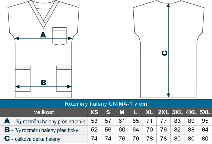 Zdravotní halena Unima 1 má unisexový střih, který perfektně sedne jak ženám, tak mužům. Její design je nadčasový a funkční, což ocení každý, kdo potřebuje v práci volnost a spolehlivost v pohybu.