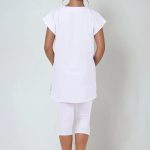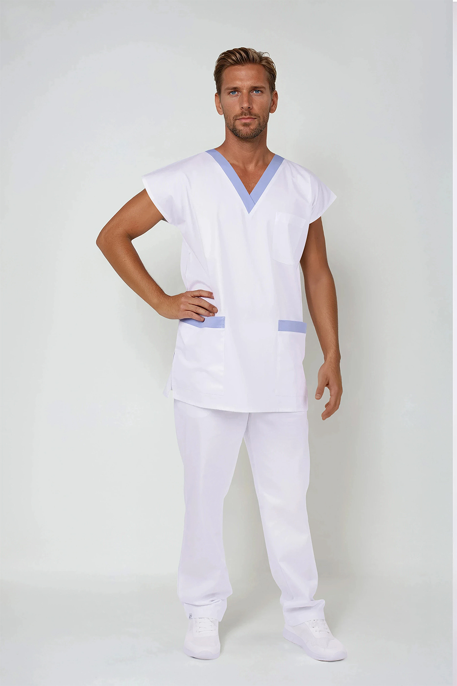 Design zdravotnické haleny vychází z osvědčeného střihu typu UNI – tedy unisex, který je vhodný pro ženy i muže. Střih je volnější a neomezuje v pohybu, což oceníte zejména při práci, která vyžaduje aktivitu, manipulaci s pacienty, nástroji nebo pohyb mezi odděleními. Krátké rukávy umožňují volnost pohybu rukou a zároveň splňují hygienické standardy.