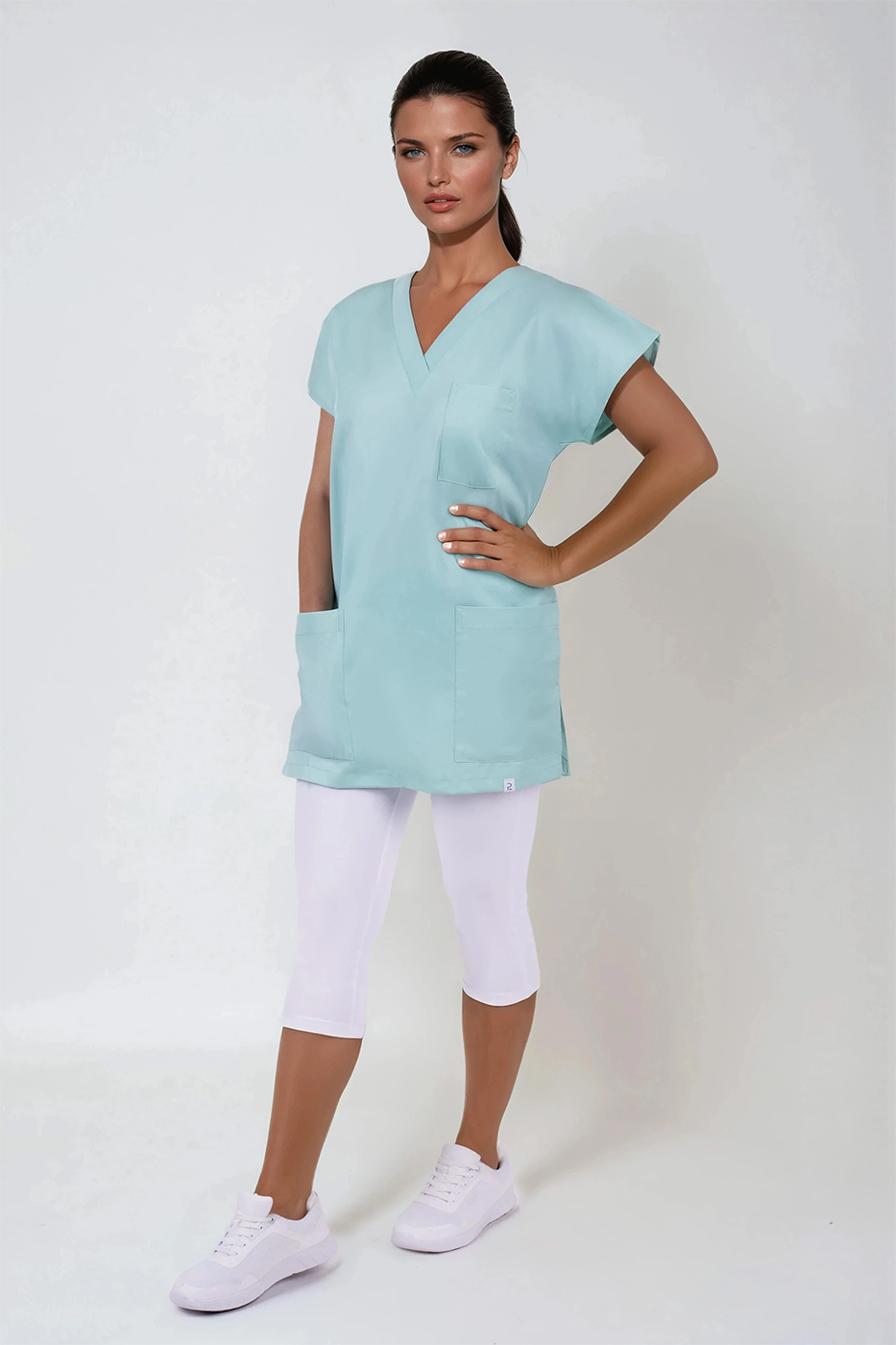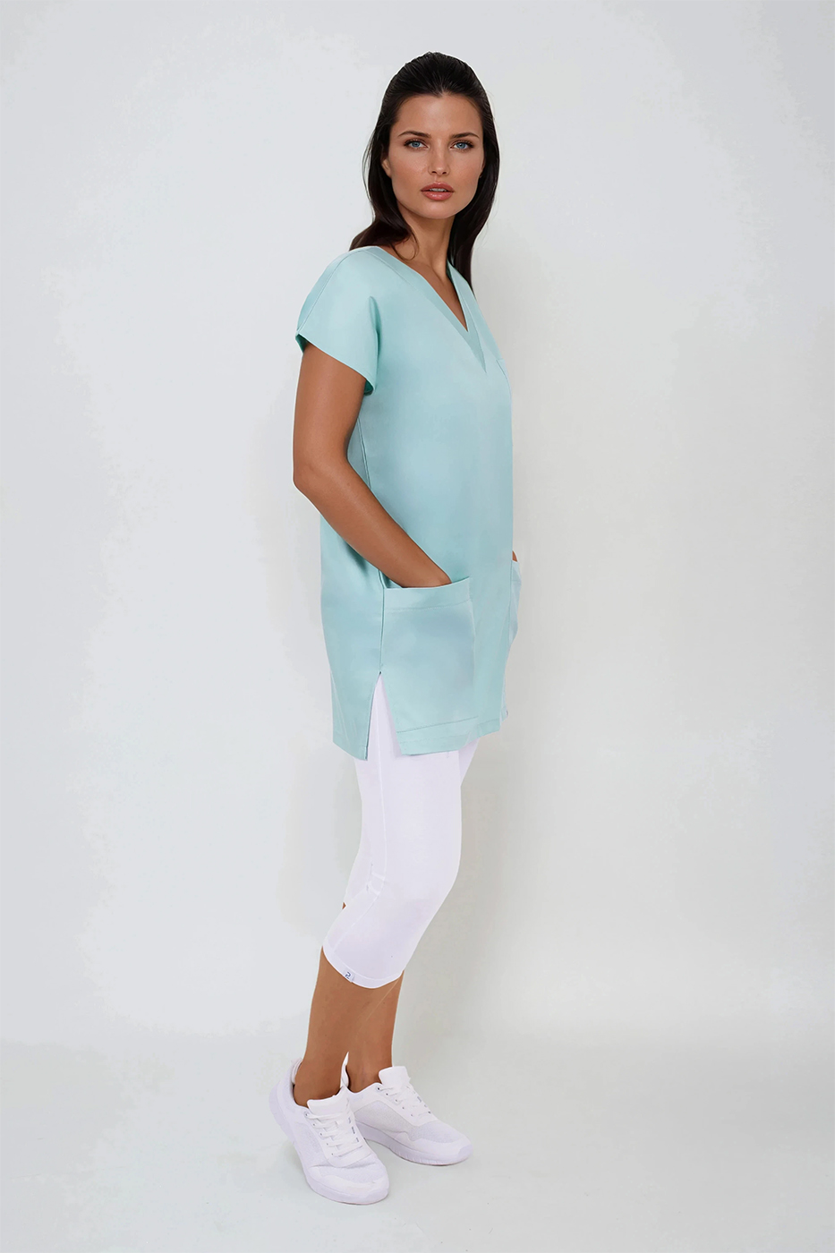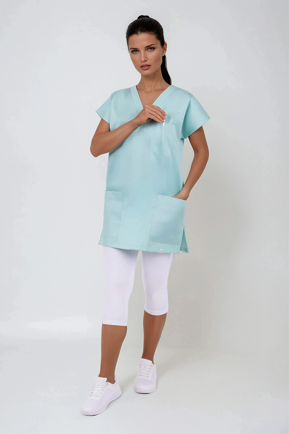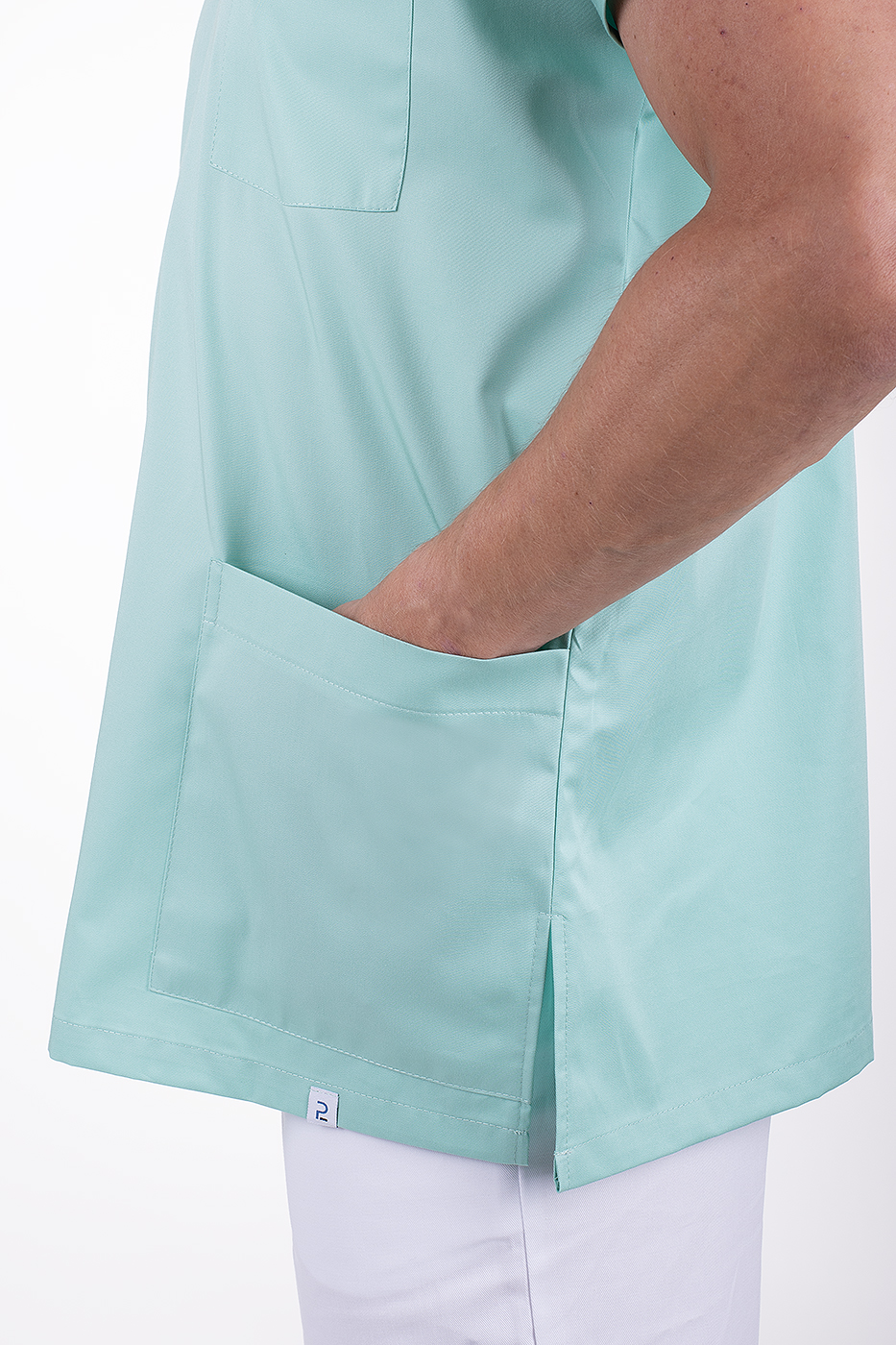 Unisexová zdravotnická halena Unima HAU31 se vyznačuje rovným a elegantním střihem, který lichotí ženské i mužské postavě, aniž by omezoval v pohybu. Krátké rukávy poskytují volnost, důležitou při každodenním výkonu práce, zatímco výstřih do V usnadňuje oblékání a zároveň působí decentně a elegantně.