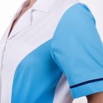 Základem kvality této haleny je použitý materiál – 100% vysrážená bavlna keprové vazby o gramáži 175g/m². Tento materiál je pevný, prodyšný a velmi příjemný na nošení. Díky vysrážení si zachovává tvar i po opakovaném praní, což je ve zdravotnictví klíčové. Zdravotnická pracovní halena Ruby v tyrkysové barvě je navíc barevně stálá a i po mnoha vypráních si uchovává sytý a svěží vzhled.
