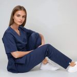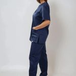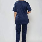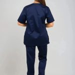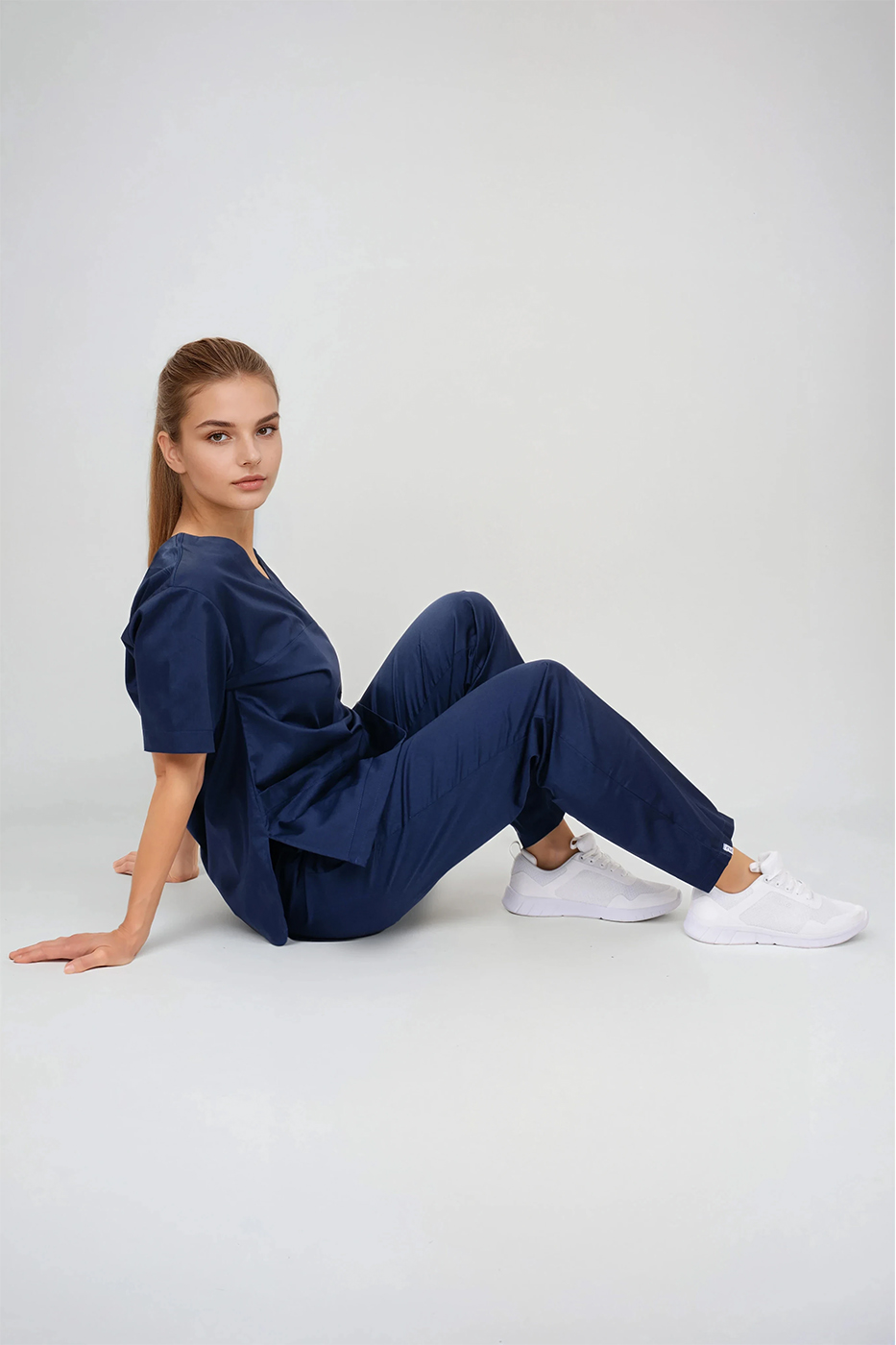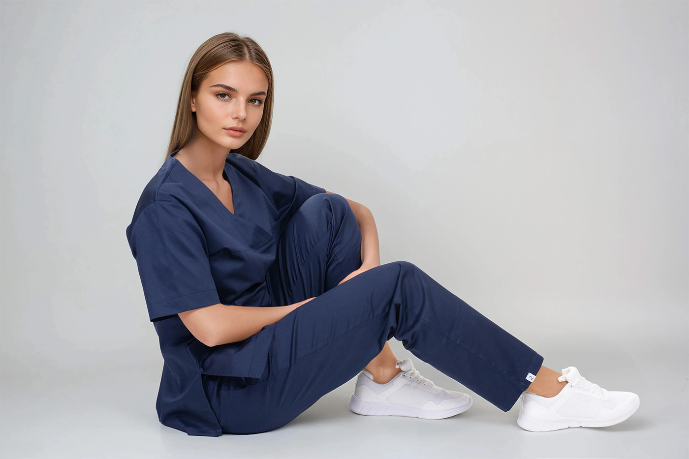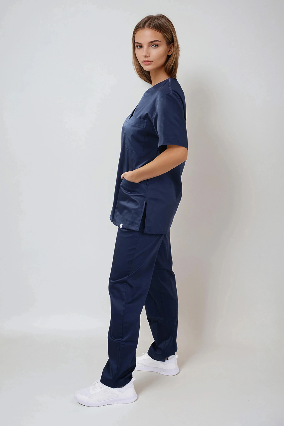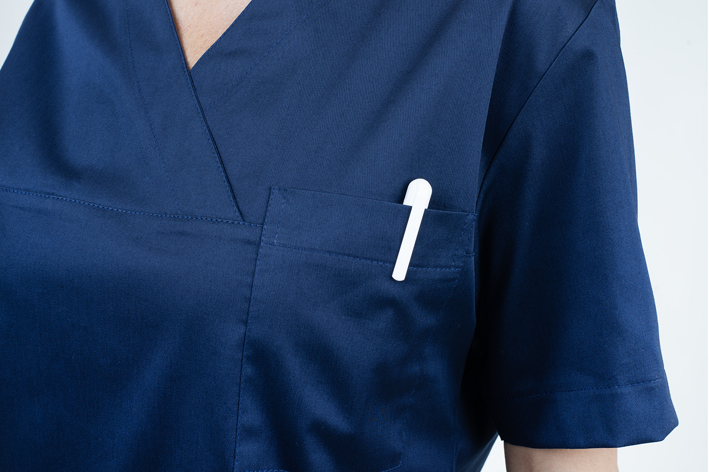 Tmavě modrá barva působí seriózně, profesionálně a zároveň elegantně. V kombinaci s kvalitním bavlněným saténem vytváří oděv, který splňuje všechny požadavky moderní zdravotnice – od hygieny přes pohodlí až po reprezentativní vzhled.