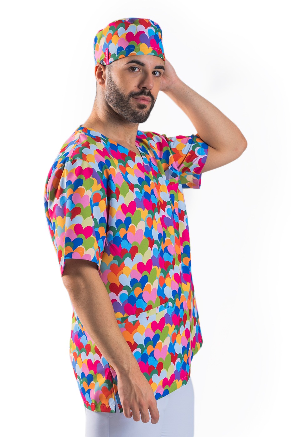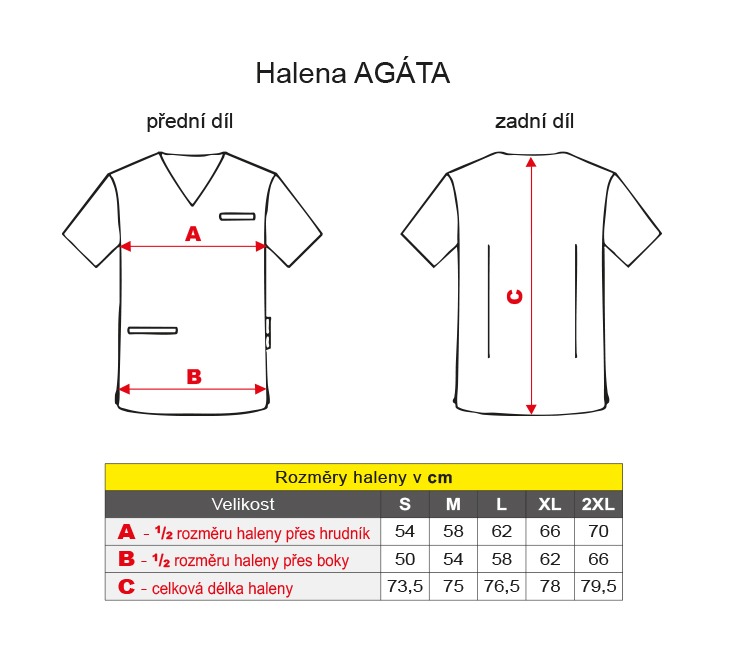 Halena Uni Agáta Multi má originální a kreativní potisk designem od Agathy Ruiz de la Prady, jedné z nejuznávanějších designérek ve světě módy. Unisex pracovní halena má krátké rukávy, výstřih do V a 2 praktické kapsy. Boční rozparky a zadní záševky zajišťují lichotivý a pohodlný střih, který umožňuje volný pohyb během pracovního dne. Halena je vyrobena z moderního materiálu, který je antibakteriální, velmi prodyšný a odolný vůči postříkání bělidlem, což zajišťuje hygienu a trvanlivost této pracovní haleny.