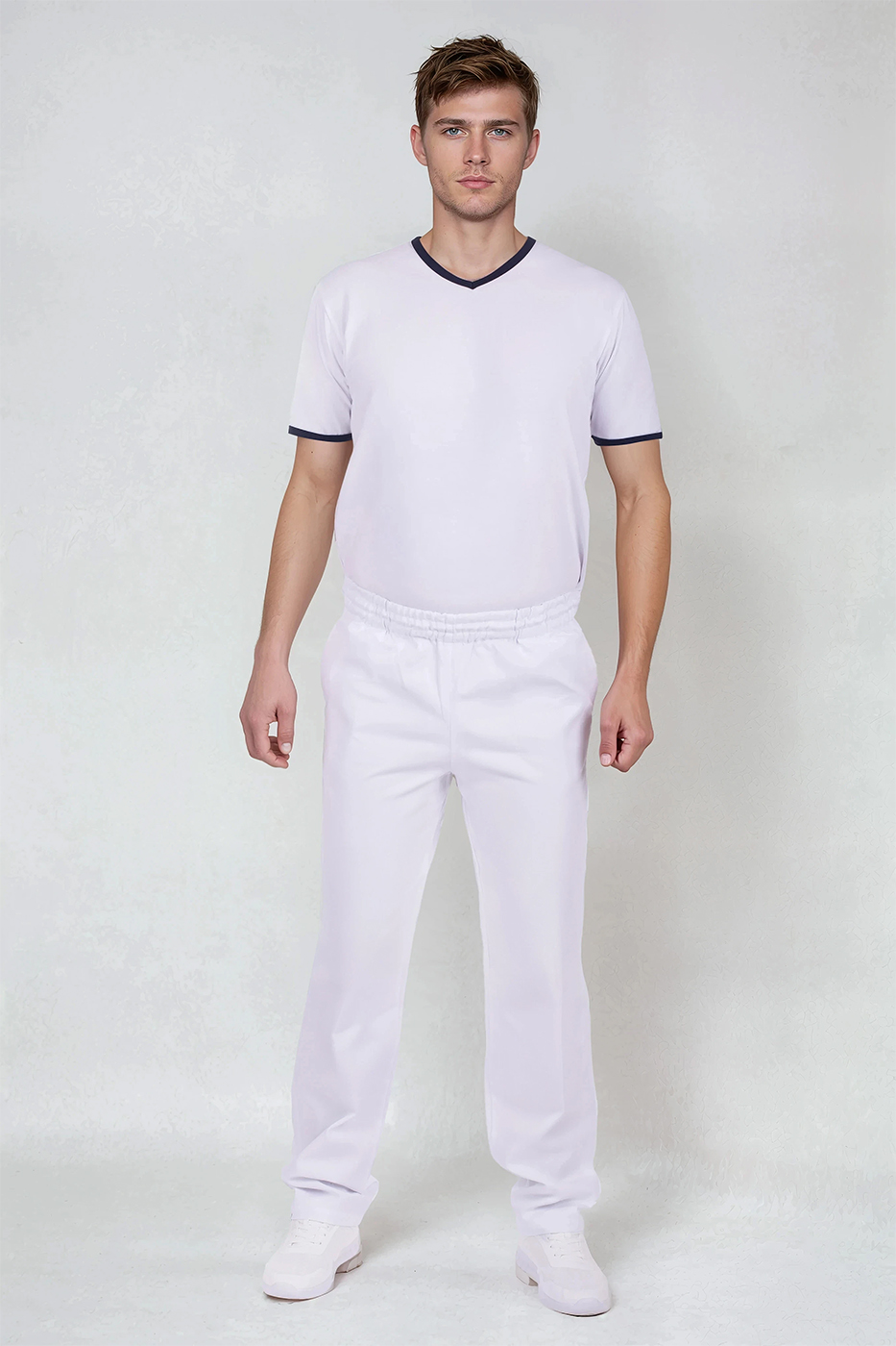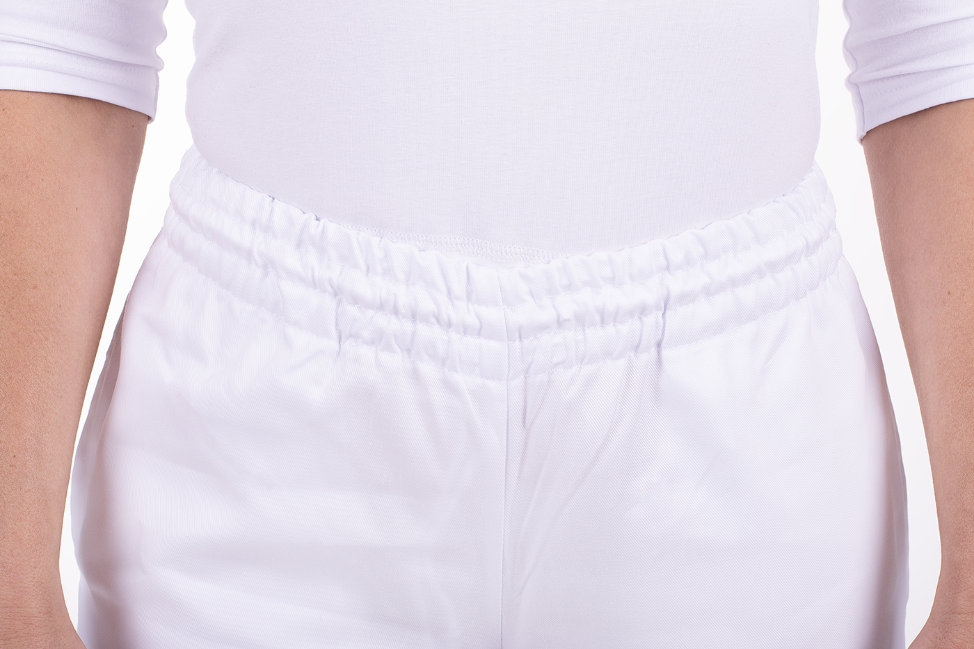 Zdravotnické kalhoty na gumu Uni bílé 50/50 – pohodlí a odolnost pro každý den