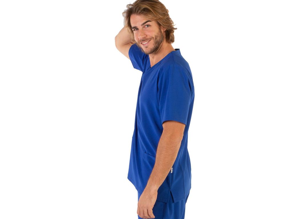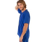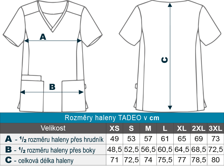 Pracovní halena pánská Tadeo modrá mikrovlákno s krátkými rukávy a výstřihem do V, 3 kapsy v přední části – 2 na pravé straně, halena je ušita z revoluční tkaniny s antibakteriální úpravou Silvadur, obsahující ionty stříbra, které poskytují ochranu a svěžest. Tkanina má elastickou vlastnost 360°, která umožňuje roztažnost ve všech směrech což je důležité pro snadný pohyb a pohodlí. Materiál: mikrovlákno 95% PES 5% elastan 170g/m2. Praní: na 30°C.
