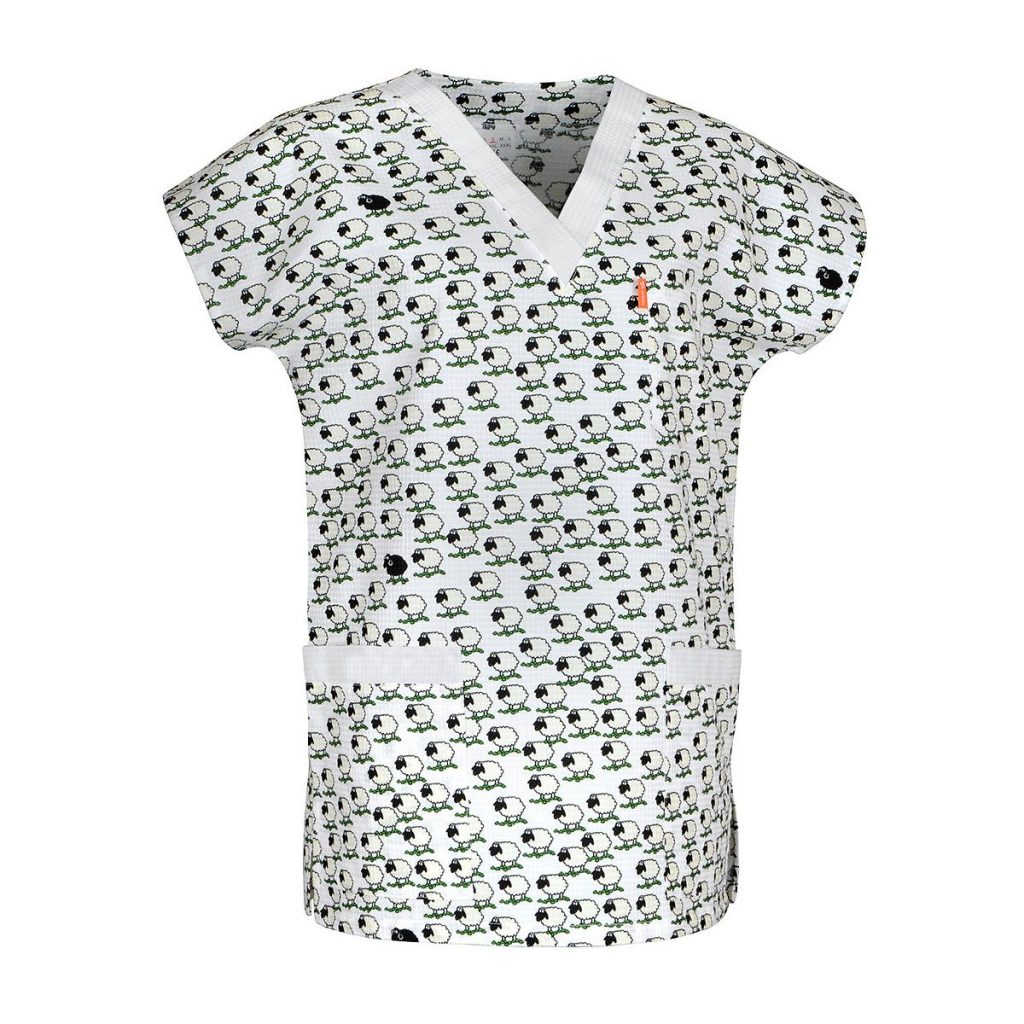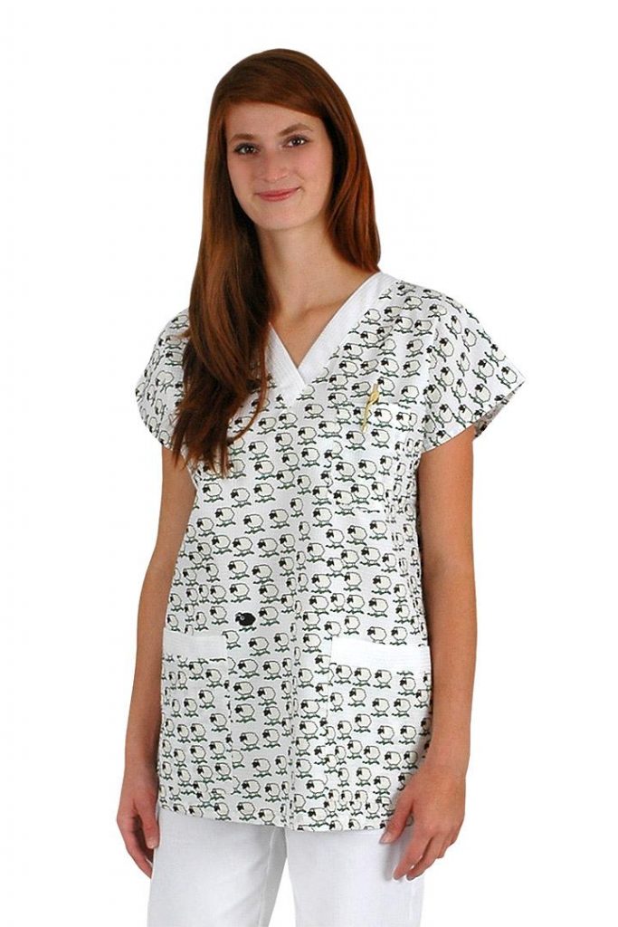 Zdravotnické pracovní haleny Unima O má rovný unisexový střih s krátkými kimono rukávy a výstřihem do V, na předním díle 3 nakládané kapsy, dolní kraj je rovný s krátkými bočními rozparky. Materiál: 100% bavlna, 150g/m2, vafle nežehlivá úprava. Praní: na 60°C.