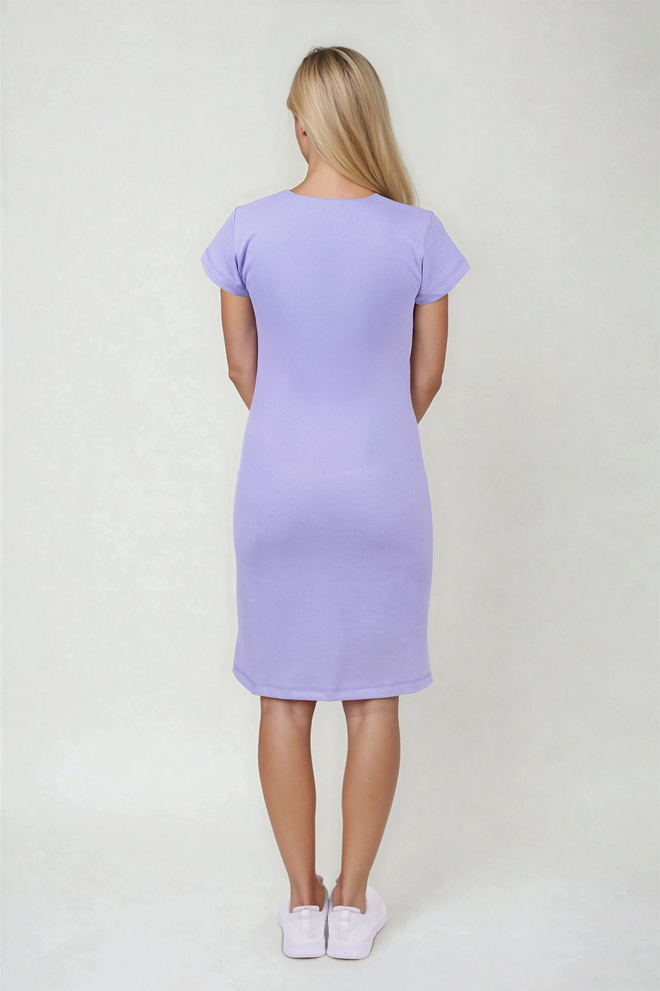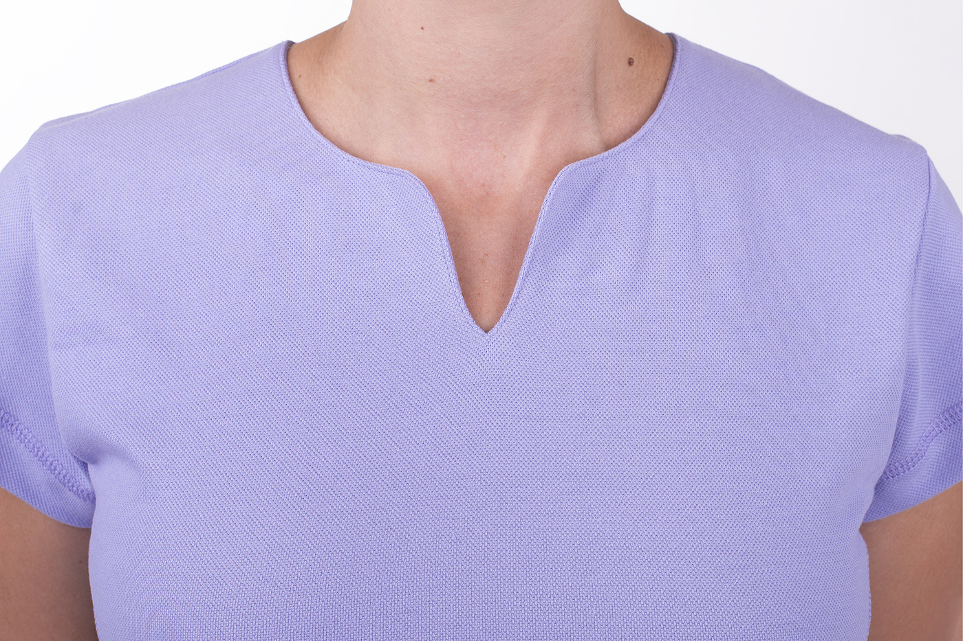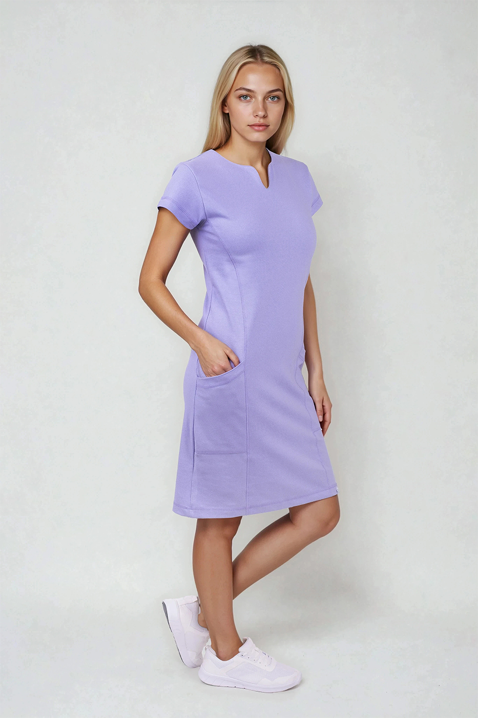 Zdravotnické šaty Linda fialové mají mírně projmutý princesový střih, který elegantně zvýrazňuje ženskou siluetu a zároveň poskytuje dostatek prostoru pro volnost pohybu. Střih je navržen tak, aby vypadaly dobře na všech typech postav – jemně tvarují pas, přitom neomezují při chůzi, sezení ani práci v pohybu.