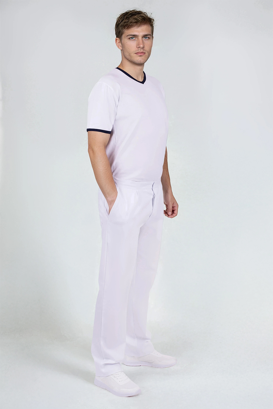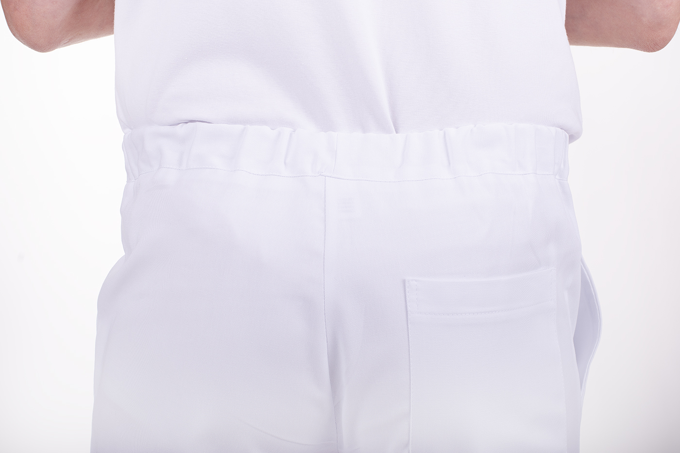 Kalhoty jsou vhodné pro praní na vyšší teploty, což je důležité zejména v oblastech s vysokými hygienickými nároky – například v nemocnicích, lékárnách nebo gastronomii.